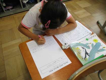 国語科で、ミニトマトをよく観察して、伝わるように文章を書く「かんさつ名人」という学習をしました。