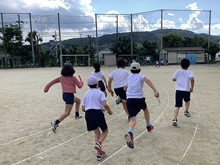 6時間目、体育の時間にリレーをしました。