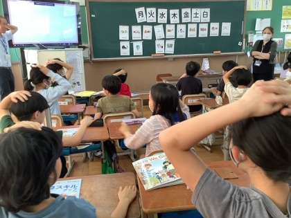 習ったばかりの英語の教科名を、ALTの先生が発音してくれます。