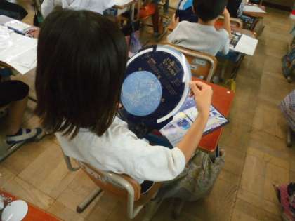 星座早見板をもらって、くるくる回して星座を確認していました。