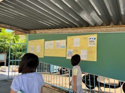 広報委員会主催の夏のイラストコンクールに応募していた絵が貼りだされました。