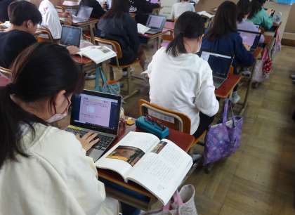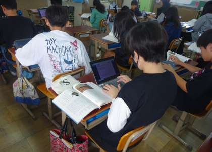 室町時代にさかんだった狂言。社会科で以前学習し、どのようなものかは知っていましたが、今日初めて狂言の動画を見ました。初めて聞いた感想では「この言葉どういう意味?」「動きがあったら意味が分かる!」「ちょっと笑える!」などがあり、狂言の面白さに触れることができました。次回の学習から、狂言についてもっと深く学習していきます。