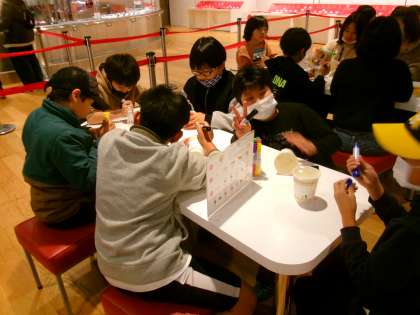 今日は社会見学に行きました。カップヌードルミュージアムでは自分だけのオリジナルカップヌードルを作りました。みんな集中していました!