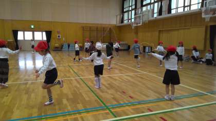 今日も大なわとびを頑張りました!大波・小波やゆうびんやさん、くぐり抜けなど、班のみんなとなかよく楽しみました。