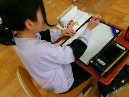 集中して書写をしました。はねやはらい、とめを意識して取り組むことができました。