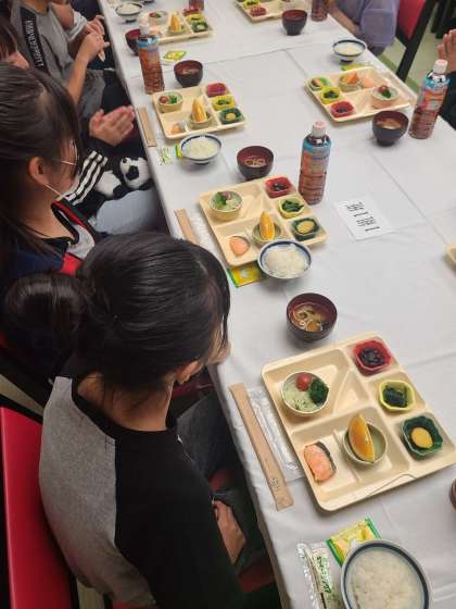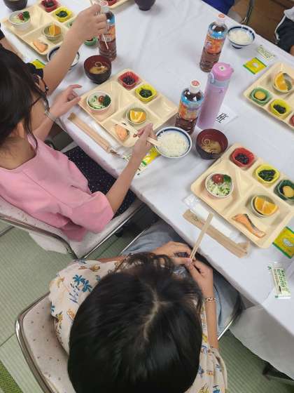 子どもたちは朝食を食べて、今日の栄養源をチャージしています。