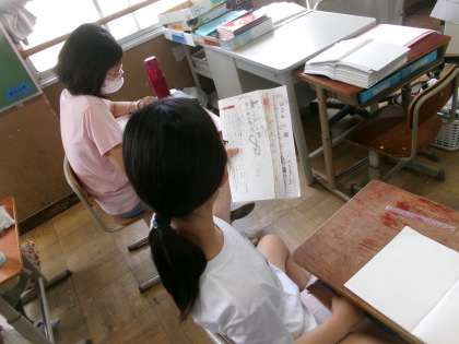 国語科の学習で筆者の主張に対する自分の考えをまとめました。自分の考えを交流することで、頭の中の考えがまとまっていくこともよくあります。