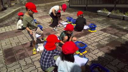生活科の学習では、双葉の観察をしてみつけたよカードに書きました。目・手・鼻・耳を使ってじっくりと観察していました。