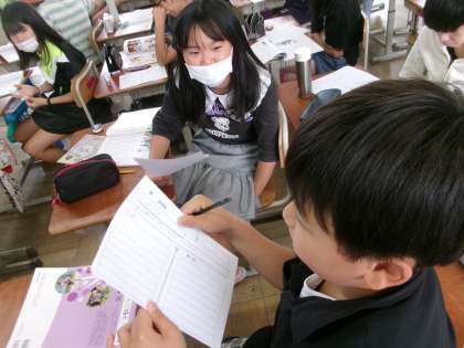 道徳の学習で【心】と【心づかい】の違い、【思い】と【思いやり】の違いについて知り、どうすれば親切が増えるのかについて考えました。