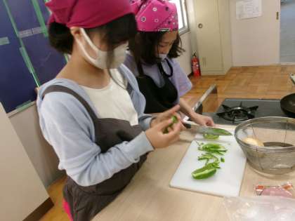 しっかりと手順を確認し、調理を進めています。こういった協力してする活動の姿が素晴らしいです!