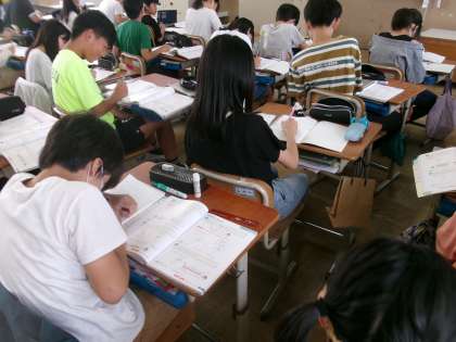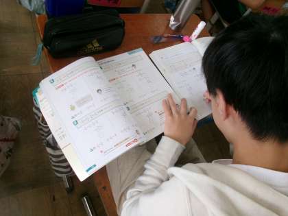 計算問題の練習に取り組んでいます。時間とにらめっこしながら、ひとりひとりが取り組んでいます。