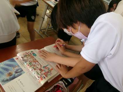 遊園地での出来事を文章で表現しました。書いた文章を交流をするというめあてがあると、やる気がアップするようです。