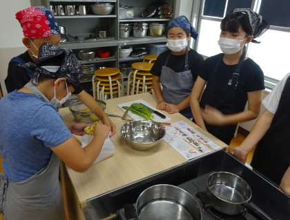 今日は5年1組の調理実習でした!事前に決めていた役割分担を確認しつつ、困っている人のところを助けに行き、良いチームワークでゆで料理を作ることができました!