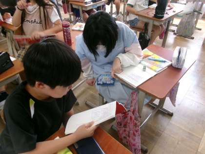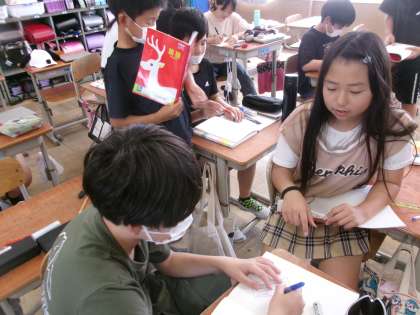 1つでは長い文や、主語・述語が複数ある文は2つの文にすると内容が理解しやすいです。では、どんな文にすればいいのか。それを考えて意見の交流をしました。