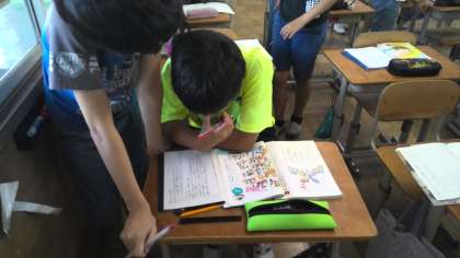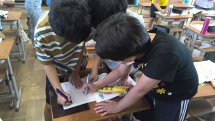 教科書に出てくる町の様子を記事にして表現しました。みんな交流の時間がとても好きそうです。