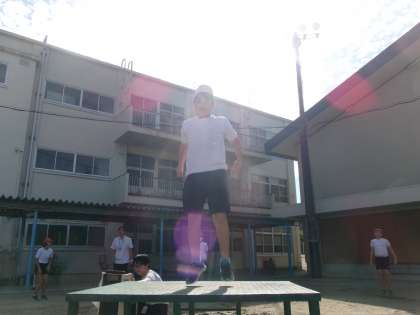 ラジオ体操は高学年の準備体操の係の子たちが担当しました。みんな張り切っています。