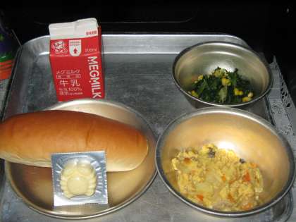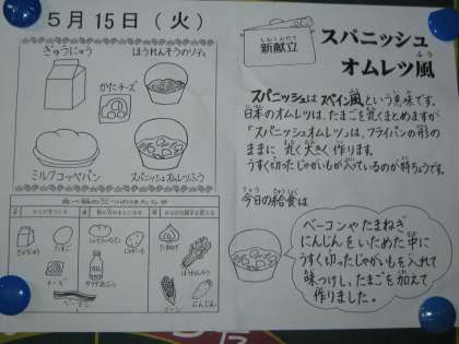 今日の給食は,「スパニッシュオムレツ風」という新メニューだそうです。