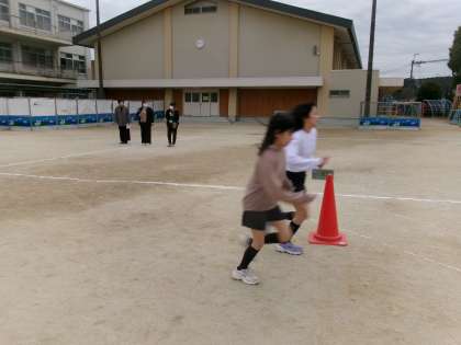 体育の時間にジョギングに取り組んでいます。自分が走り切れるペースで走り切ることを目標にしてがんばっています。脈拍数が走った後には大きく上がっていることも分かったようです。