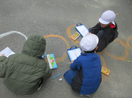 1組の今日の図工は、外に出て自然の物をスケッチしました。