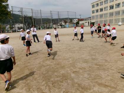 学年でドッジボールもしました。みんなが楽しい!を目標にして、目標はしっかり達成することができました。