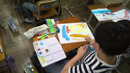 4月17日 3年生 〜絵の具+水+筆=いい感じ〜