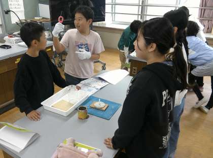 4月18日 6年生 理科の実験が始まりました 公開日 2025/04/21 更新日 2025/04/21 6年生 理科の学習では「ものの燃え方」を学習しています。今日は、ろうそくの火に線香の煙を近づけると、どうなるのかを調べました。班で協力して実験を進める姿がとてもよかったです。