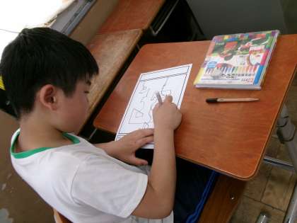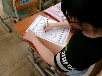 4月22日 4年生 〜一筆書きの線から〜 公開日 2025/04/22 更新日 2025/04/22 4年生 一筆書きで、様々な模様を作りました。真っすぐの線や曲がった曲線など、おもいおもいの線を書きました。