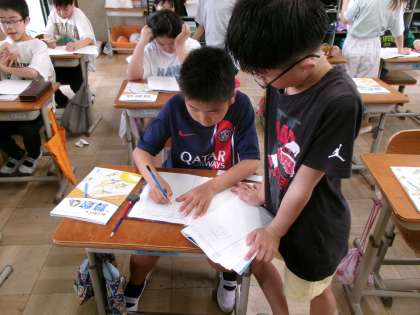 筆算に挑戦していると、2年生で学習した九九の偉大さが改めて分かったようです。