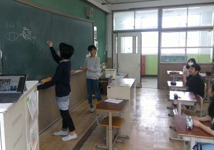今日は、6年生のリーダー性を発揮してくれました!中間休みにクラスで楽しめそうなことを考え、実行にうつしてくれました。休み時間のリーダー会議も白熱し、「なんでもバスケット」「絵しりとり」をみんなでしました!校長先生も参戦し、とても盛り上がりました。