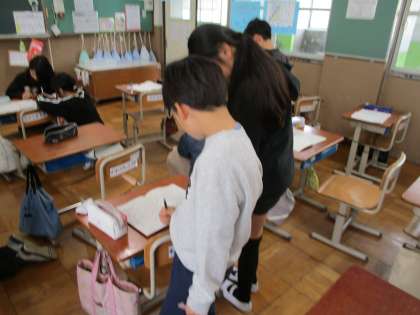 今日は、みんなで自主学習ノートを見て、コメントを伝え合いました。「もっとこうすればよくなる!」「もうちょっとこうしたいんやけど・・・」という前向きな発言も聞こえてきました。前回よりもレベルアップした人も増えました!