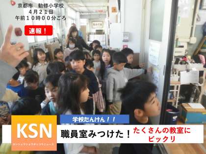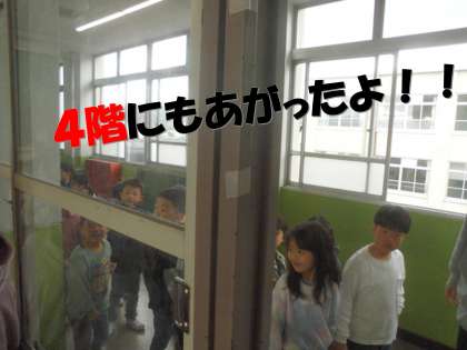 他のクラスの授業の邪魔をしないように、全員忍者になって、音を立てずにぬき足さし足しのび足。静かに校舎内を探検してまわりました。