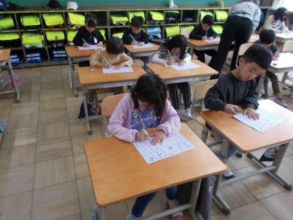ひらがなの学習が始まっています。文字の形だけでなく、とめ・はね・はらい・まがりなどに気を付けて書いています。姿勢よく正しい鉛筆の持ち方で書けるように頑張っています。