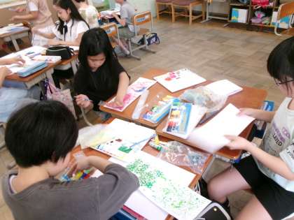 絵の具でゆめもようの2時間目でした。どんなもようになるかな〜?と楽しんで創作活動をしていました。