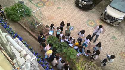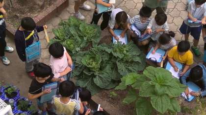 ひまわりを観察しました。 ものさしをもって高さを図る可愛らしい姿もありました。