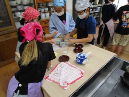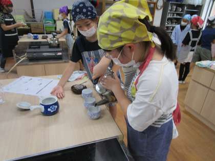 初めての調理実習!安全に気を付けて協力しておいしいお茶をいれることができました。