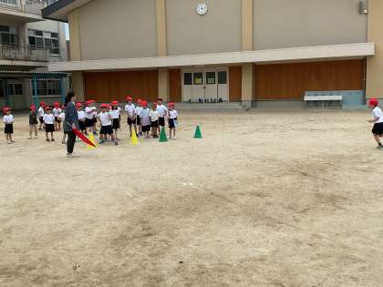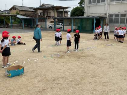 待っている間にけんけんをしながらじゃんけんをして楽しく活動しました。
