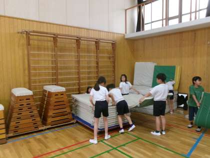 自分たちでマットをきれいにそろえる…。次に使う人たちは気持ちいいですね!ありがとう!
