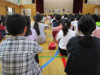 今日は、児童集会で体育館に集まりました。委員会やたてわりグループリーダーの任命式を真剣な姿で見守っていました。この背中!かっこいいです!もう1年後を見据えてますね・・・