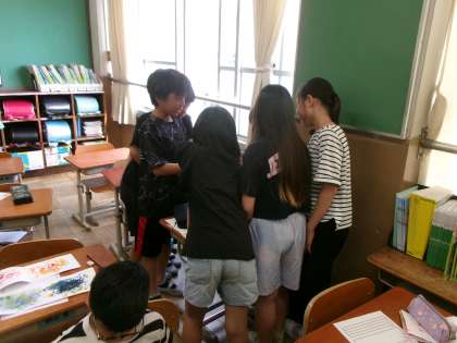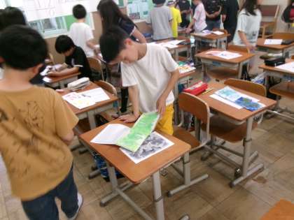 図工の作品の鑑賞をしました。友達の作品を見ると、色々な発見があったようです。