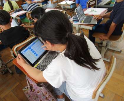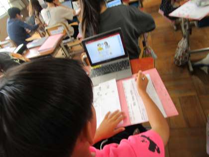 自分の言いたいことに合わせて、タブレットで音声を聞いたりそれに答えたりする姿が見られるようになりました!また、小文字の学習にも突入。大文字との違いを見つけている人も・・・!