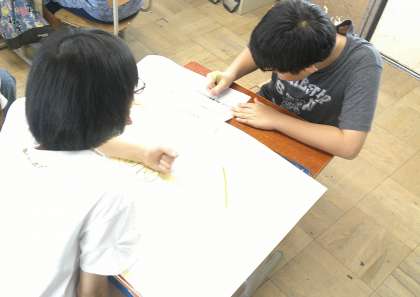 三権分立の図を班で相談し合って作りました。一生懸命レイアウトを考えている人、班のメンバーのために一生懸命調べている人、「国務大臣はどんな仕事をしているのだろう?」と疑問を解決する人など、各々のペースで進めていました。班のメンバーのためにがんばる姿がすばらしかったです。