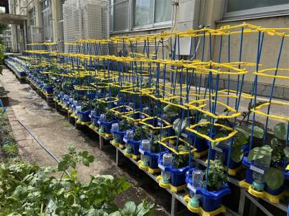 2年生が育てている野菜が大きく育ってきています。
