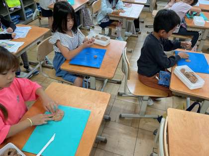 本日、1日中大雨で体育がなくなってしまいました。そのかわりに粘土を触ったり、自由帳で好きなことをしていました。違うクラスではジェスチャーゲームをして楽しみました。