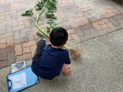 ひまわりとほうせんかの根を比べて違いを考察しました。