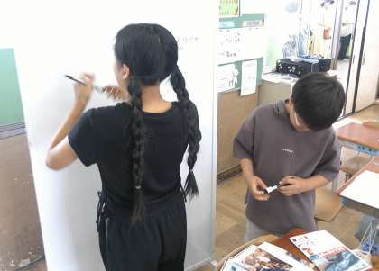 6月7日 6年生 縄文のむらの様子 公開日 2025/06/09 更新日 2025/06/07 6年生 「今から約5500年前の人々はどのようなくらしをしていたのだろう」という疑問から始まった歴史の学習。当時の食べ物は?当時の衣服は?土器って何?と各々の疑問をホワイトボードを用いてみんなで解決していきました。しかし、さらに深まる謎・・・。次回の社会で謎を解き明かしていきます。