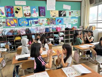 2年生 音楽 公開日 2025/06/13 更新日 2025/06/13 2年生 「たぬきのたいこ」の歌に合わせて3拍子の手遊びをしたり、手をたたいたりしながら歌いした。拍のまとまりを感じ取りながら歌いました。