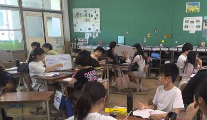 平安時代から続く年中行事を、月に分けて班ごとに調べて、ホワイトボードにまとめました。まとめたものをお互いに発表し合って学びを深めました。