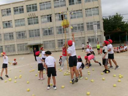 始まりました!! なかなか玉をかごに入れるのは難しいようです。