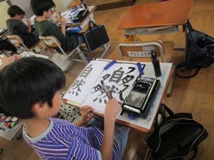 文字同士の大きさやバランスに気を付けて作品を仕上げました。顔つきは真剣そのもの!