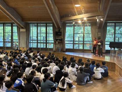 他校のこどもたちに学校紹介を聞いてもらいました。